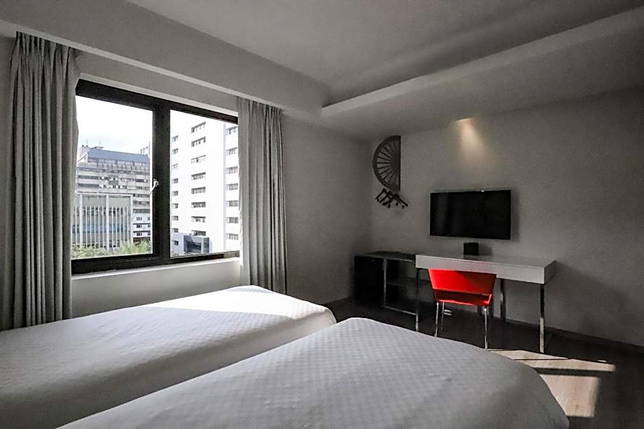This 25-square-yard stylish room is fitted with a 39-inch flat-screen TV, an electric kettle and free bottled water. Private bathrooms come with a hairdryer.